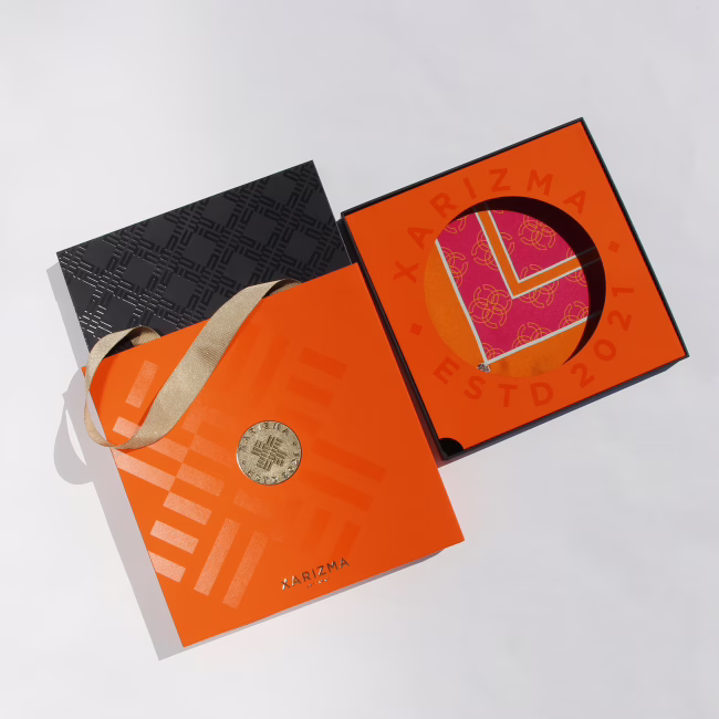 Description: Silk twill scarf with sterling silver Xarizma logo