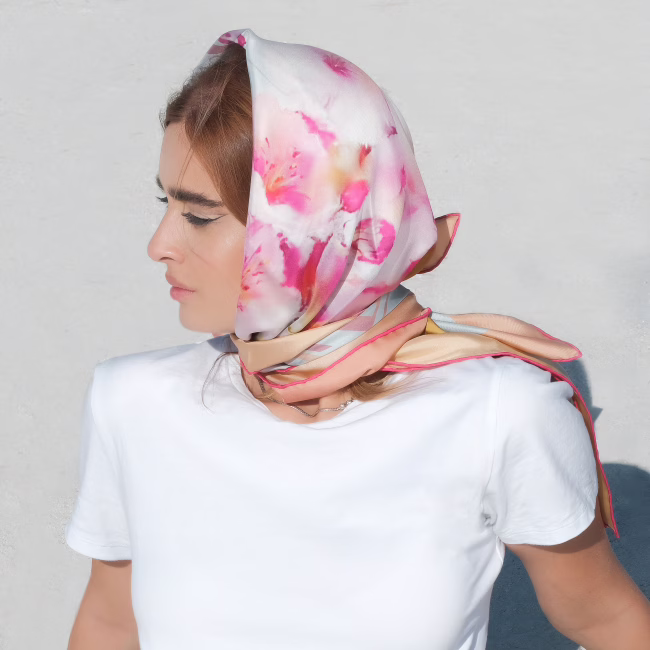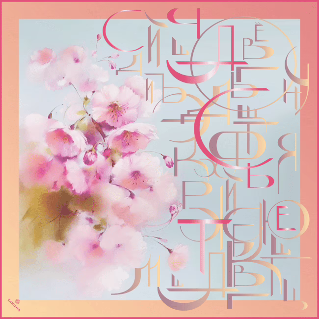 The real art piece is our twill, composed of exquisite letters, silky softness, and silvery elegance. In a most delicate manner, the hand-painted artwork was transferred onto silk to express your wishes for prosperity, wealth, tenderness, youth, and beauty.