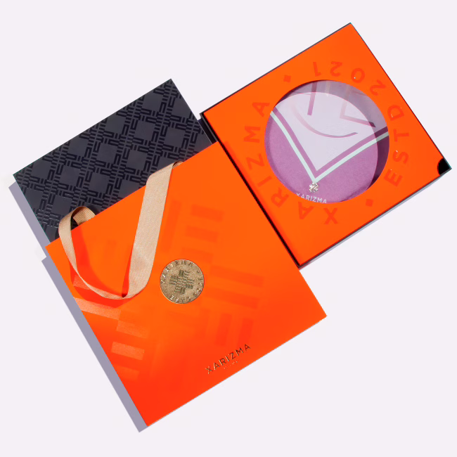 Description: Silk twill scarf with sterling silver Xarizma logo